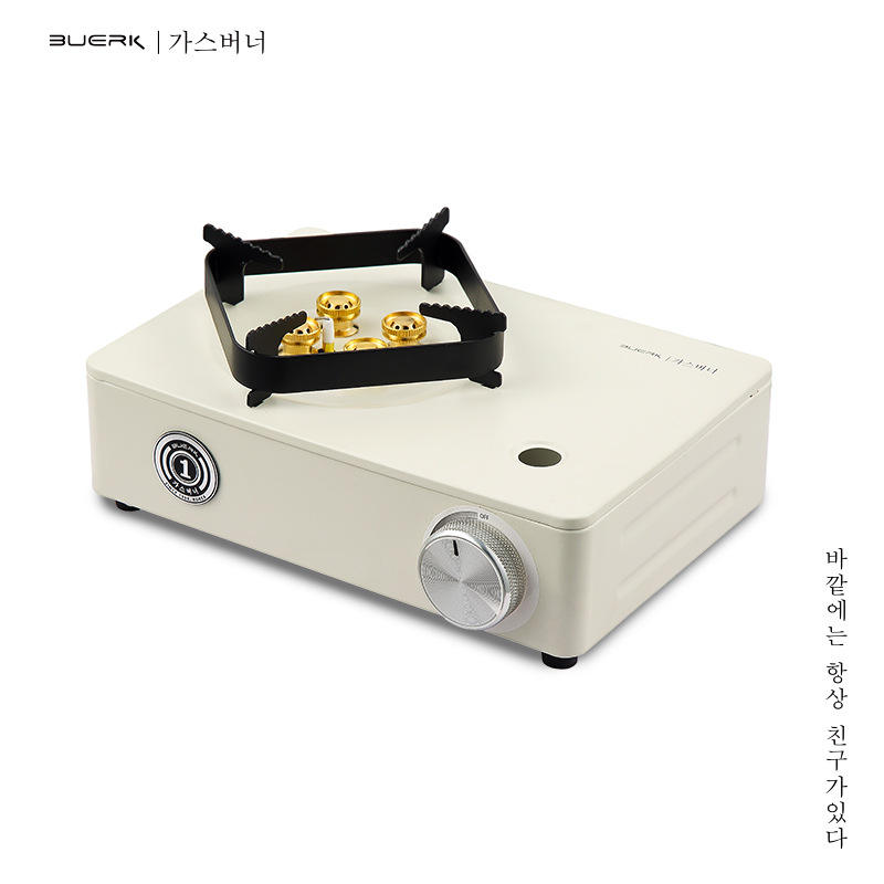 เตาแก๊สพกพาสำหรับตั้งแคมป์กลางแจ้ง ยี่ห้อ Buerk รุ่น AEM 004 สีขาว พร้อมระบบจุดไฟ สำหรับใช้งานกลางแจ้ง