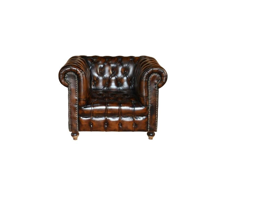 โซฟาหนังสีเบจแบบนั่งเดี่ยวพร้อมเก้าอี้เชสเตอร์ฟิลด์หุ้มหนังสีเบจสำหรับห้องนั่งเล่น