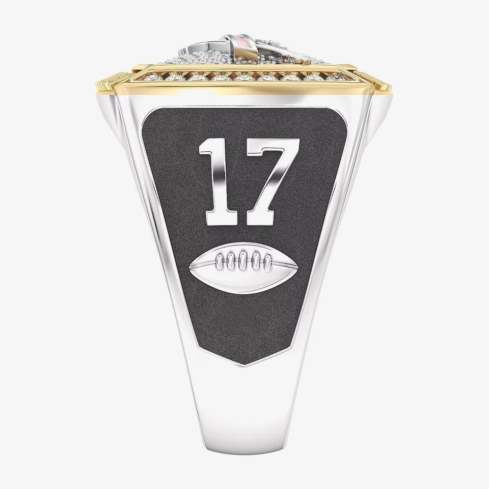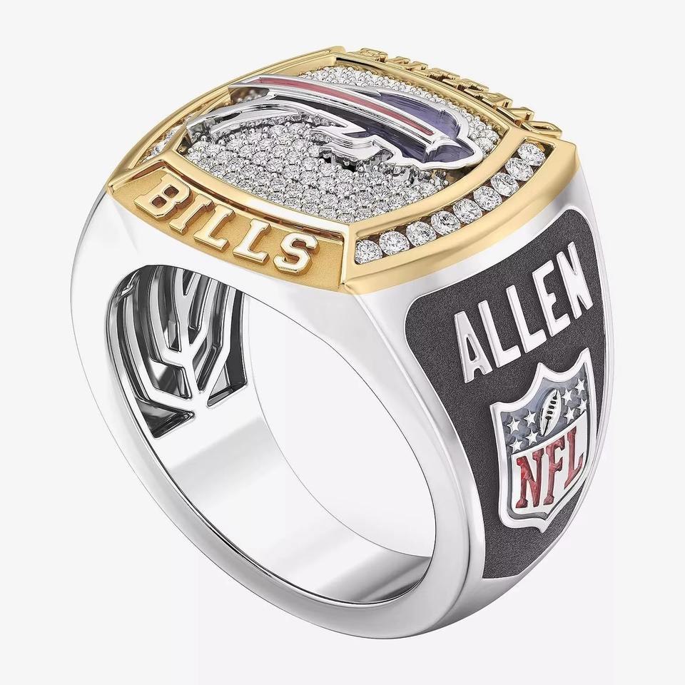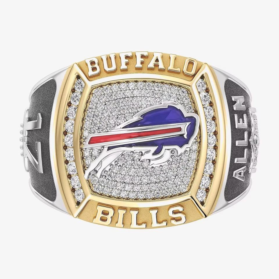 แหวนแชมป์ Buffalo Bills แบบปรับแต่งได้เต็มที่สำหรับผู้ชาย ดีไซน์คลาสสิกสองสี ผลิตตามสั่งสำหรับโรงเรียนมัธยมและมหาวิทยาลัย ทำจากโลหะผสมประดับด้วยเพชร VVS Moissanite