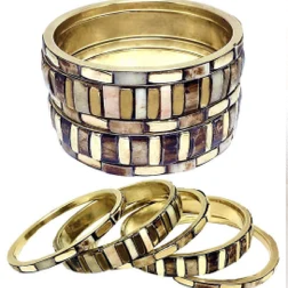 กำไลทองเหลืองและสร้อยข้อมือที่มีแม่ของมุกฝัง