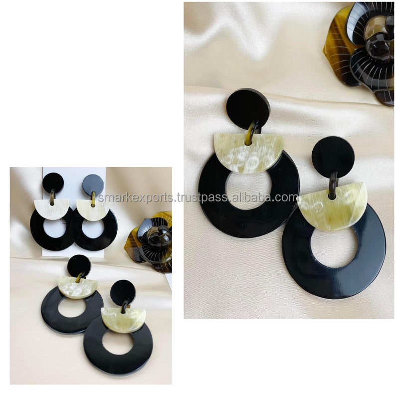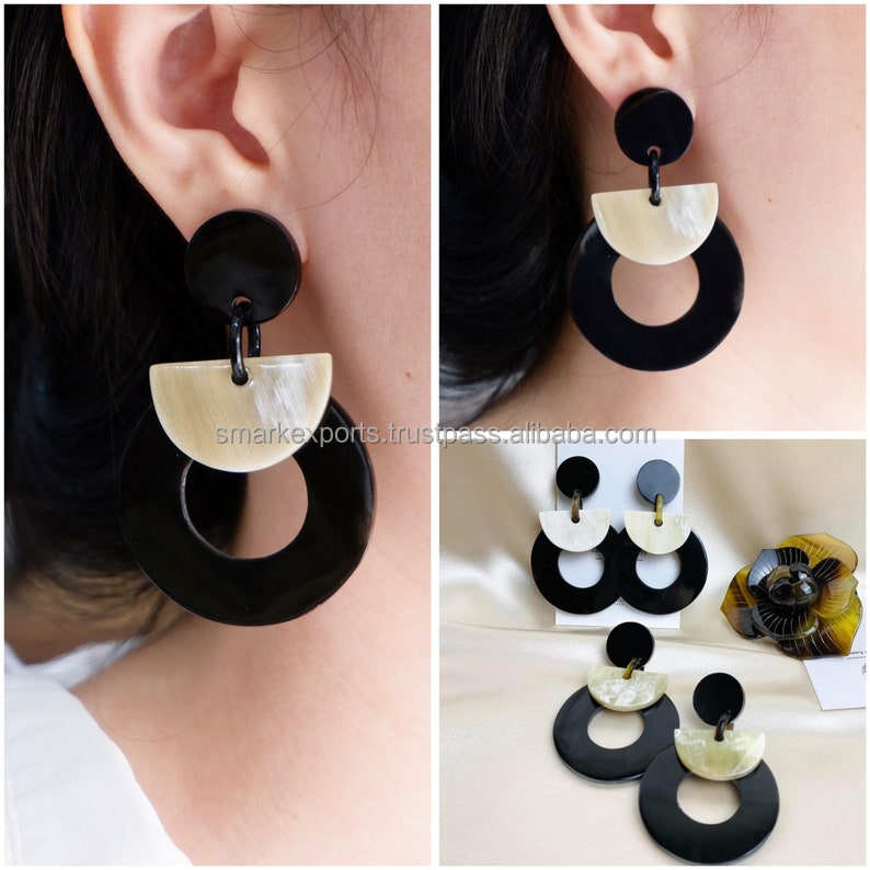 ต่างหูช่างฝีมือรูปเขาควายดีไซน์แบบหยดน้ำทรงกลมน้ำหนักเบาสำหรับผู้หญิงเด็กผู้หญิง