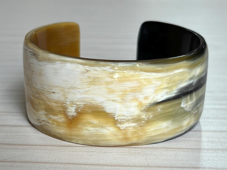 กำไลเขาควายหรือเขาวัวกำไล ANF สีน้ำเงินครึ่งด้านประดับด้วยงานฝีมือรูปพระจันทร์เสี้ยว