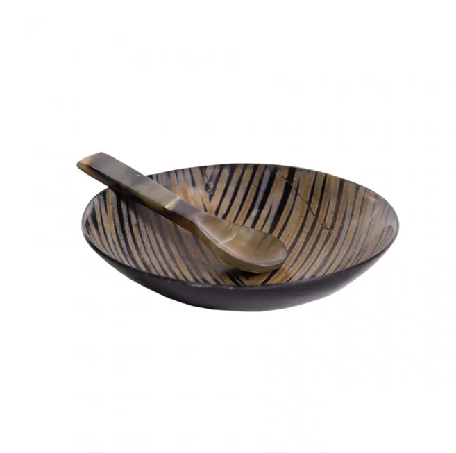 ชามเขาควายพร้อมช้อนเสิร์ฟสลัดสำหรับโรงแรมและใช้ในบ้านชามฮอร์นสีธรรมชาติ