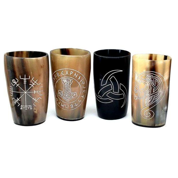แก้วเขาควายทำด้วยมือขอบทองเหลือง4ชิ้นทำด้วยมือแก้วบัฟฟาโลฮอร์นแก้ว