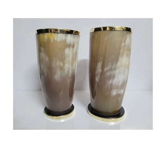 แก้วบัฟฟาโลฮอร์นขอบทองเหลืองชุดแก้วช๊อตสไตล์2ชิ้นสำหรับดื่มแก้วรูปเขาควายราคาถูก