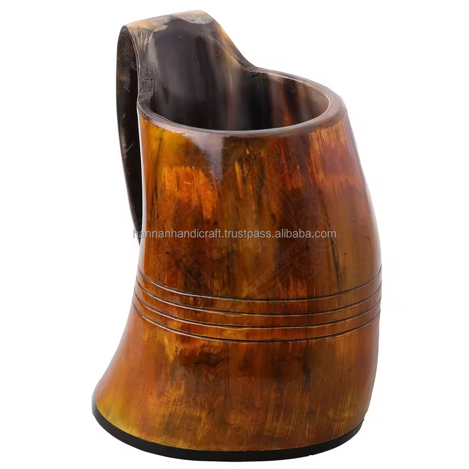 แก้วน้ำทำจากเขาควาย งานแฮนด์เมด ทนทาน สไตล์โบราณ ตกแต่งบ้าน คุณภาพสูง 4 ชิ้น ดีไซน์หลากหลาย