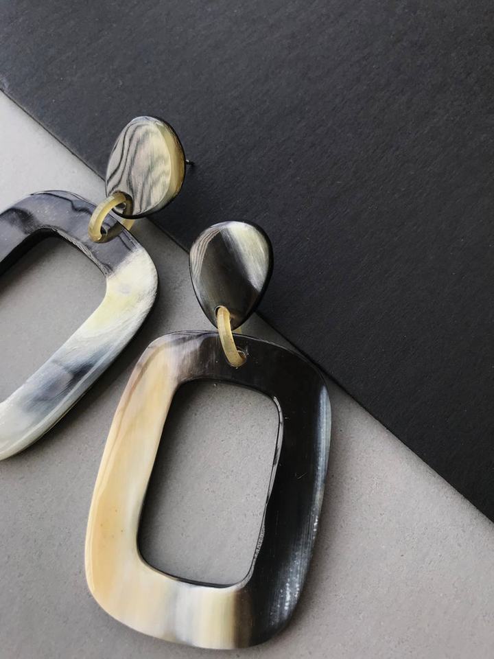 บัฟฟาโลฮอร์นธรรมชาติห่วงต่างหูการออกแบบใหม่เฉดสีธรรมชาติที่กำหนดเองรูปร่างลดลงต่างหูชุดสำหรับสาวแฟชั่น