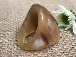 แหวนเขาควายแบบคลาสสิกลายทางสีดำและน้ำตาลที่น่าสนใจสำหรับผู้หญิงและผู้ชายงานฝีมือทำด้วยมือลดราคา