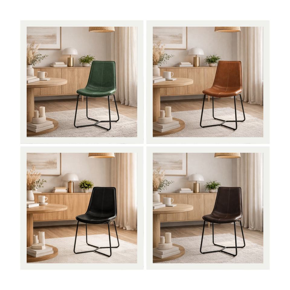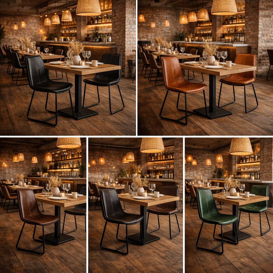 เก้าอี้รับประทานอาหารหนังบัฟฟาโลโครงโลหะ | ที่นั่งร้านอาหารสไตล์อินดัสเทรียล ดีไซน์ทันสมัยแบบมินิมอล | เป็นมิตรกับสิ่งแวดล้อม กันน้ำ นุ่มสบาย