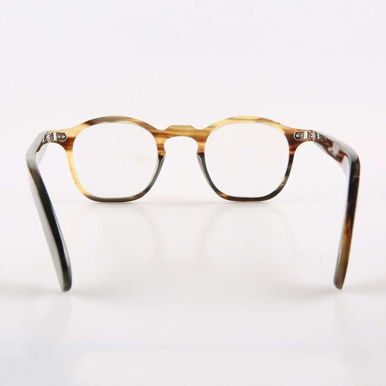 แว่นกันแดดเขาควายธรรมชาติทำด้วยมือขอบบางกรอบแว่นตาหมุดโลหะน้ำผึ้งสีดำ100% แท้เรขาคณิตสมัยใหม่ปีใหม่