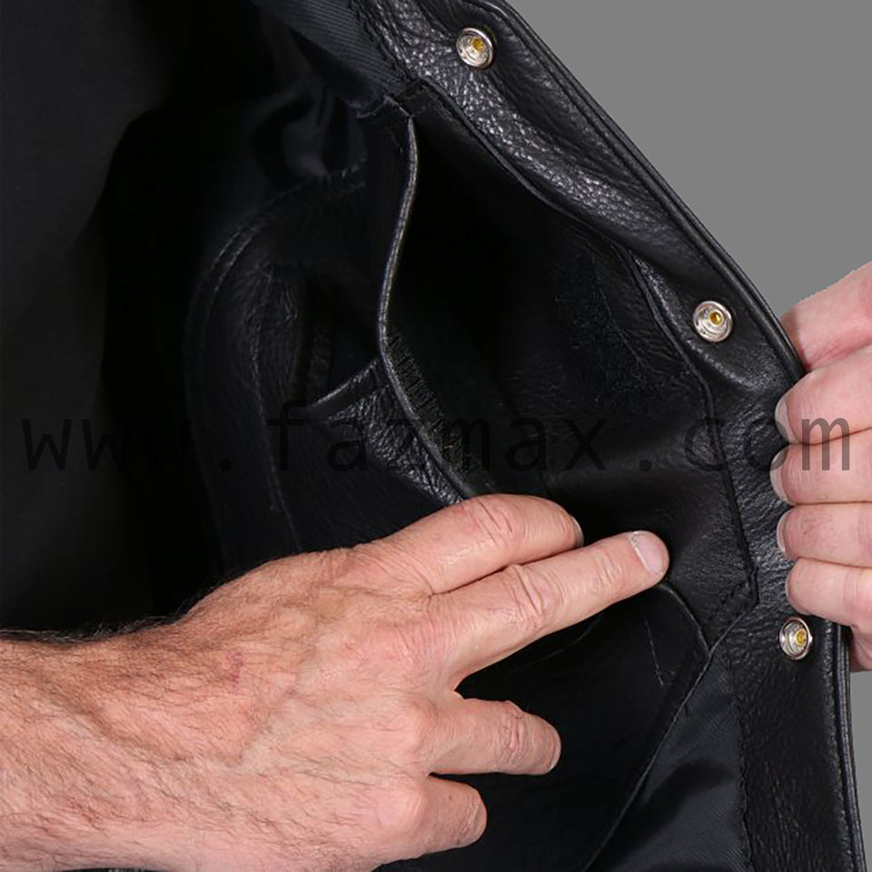 บัฟฟาโลนิกเกิลสแน็ปเสื้อกั๊กหนังพรีเมี่ยมเสื้อกั๊กนักขี่จักรยานผู้ชาย 2024 OEM ขายส่งผูกเชือกด้านข้าง