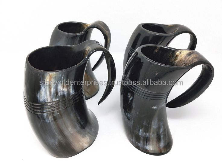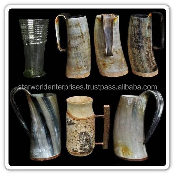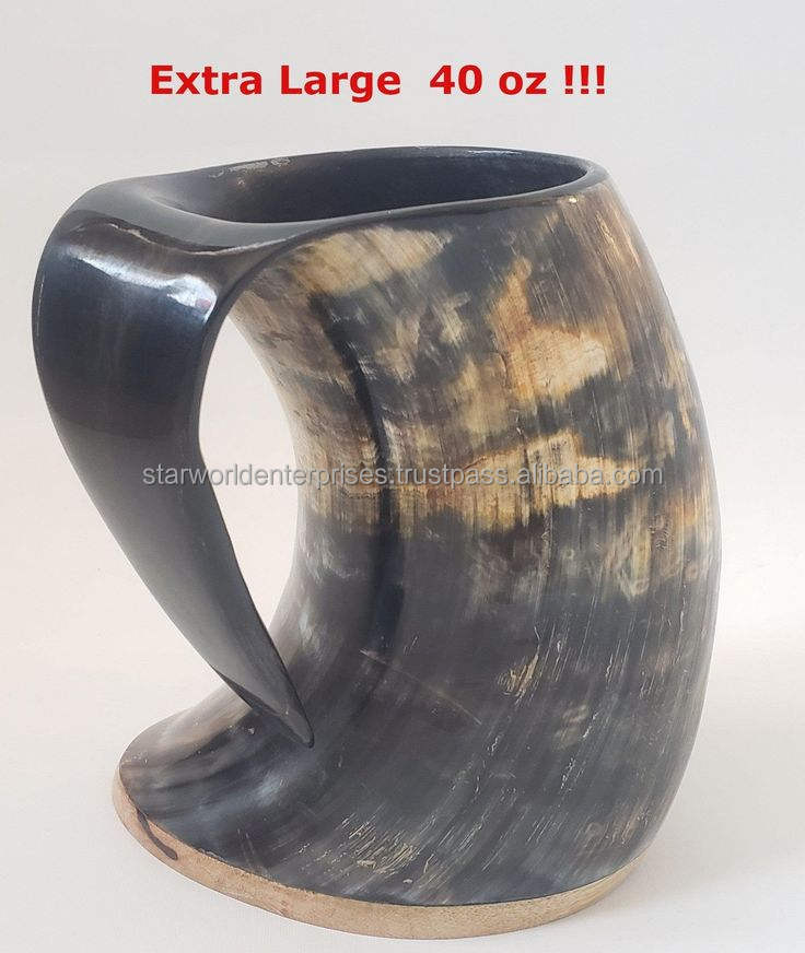 แก้วเบียร์ทำจากเขาควายสไตล์ไวกิ้งโบราณ ของสะสมสำหรับดื่ม เหมาะสำหรับใช้ในบ้านและโรงแรม จากซัพพลายเออร์ชาวอินเดีย