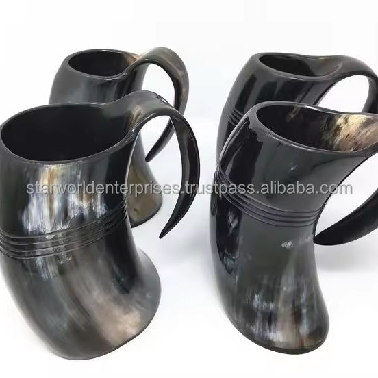 แก้วมักทรงเขาควายสำหรับดื่มเบียร์วินเทจฮอร์นแบบสะสมสำหรับใช้ในบ้านและโรงแรมจากผู้จำหน่ายอินเดีย