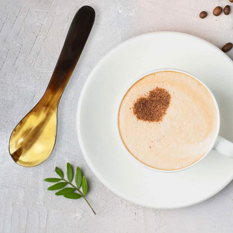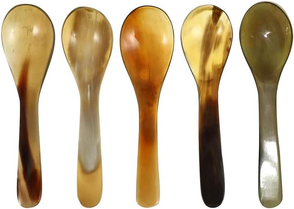 ช้อนแต่งงานแบบคลาสสิกทำจากเขาควายขัดเงาด้วยกระจก ดีไซน์สร้างสรรค์ น้ำหนักเบา ความจุ 10 มล.