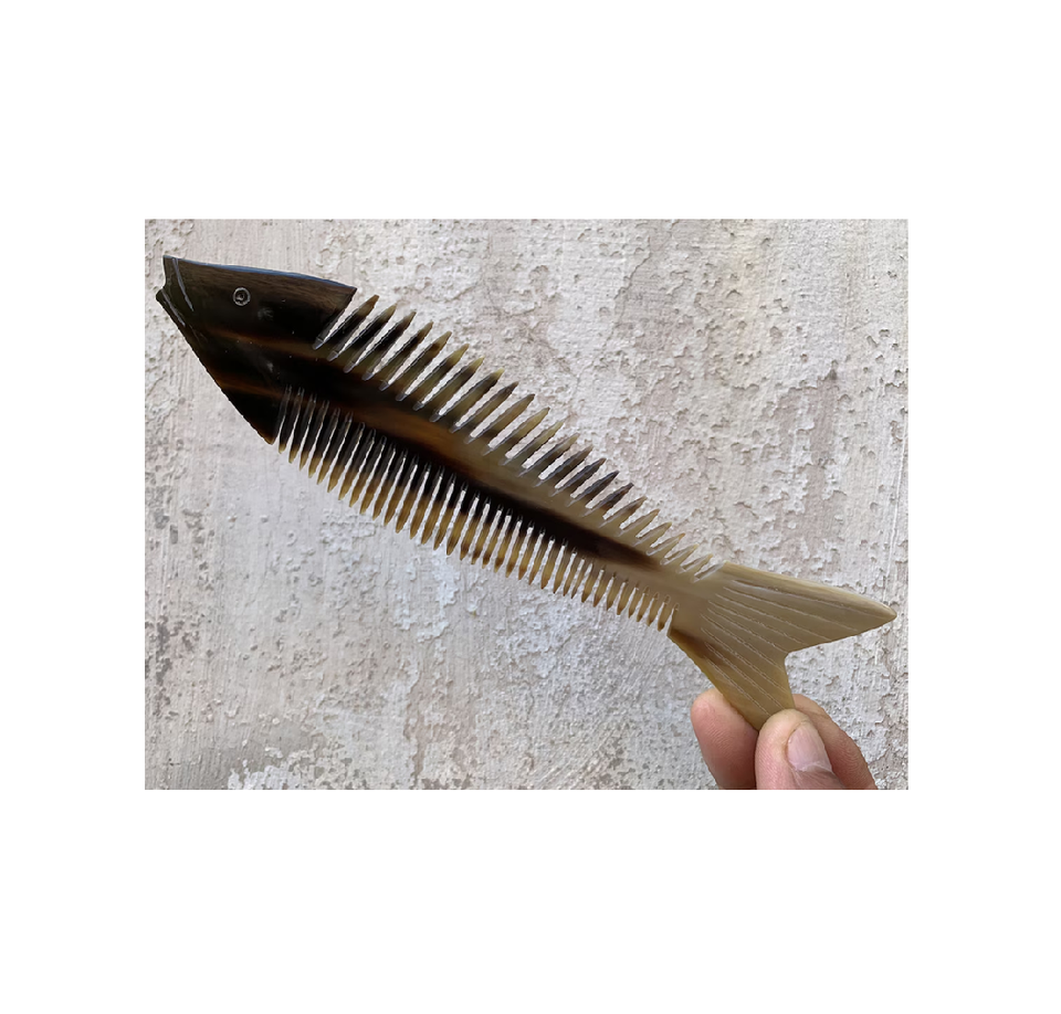 หวีเขาควายทำด้วยมือหวีพกพา-วัยกลางคนดีไซน์คลาสสิกเป็นมิตรกับสิ่งแวดล้อมดีไซน์ปลา