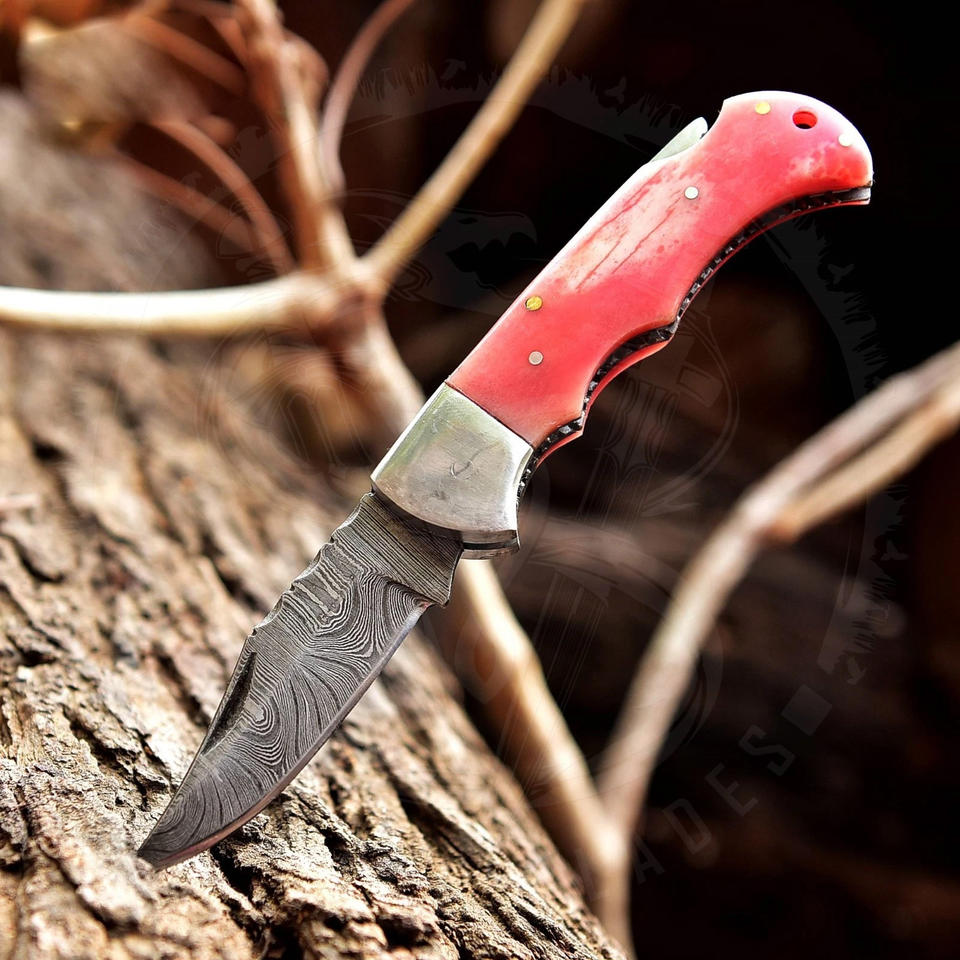 สร้างแบรนด์มีดของคุณเอง มีดพกพาเหล็กดามัสกัส ใบมีดพับได้ สำหรับล่าสัตว์ ตั้งแคมป์ พกพาประจำวัน พร้อมปลอกมีด