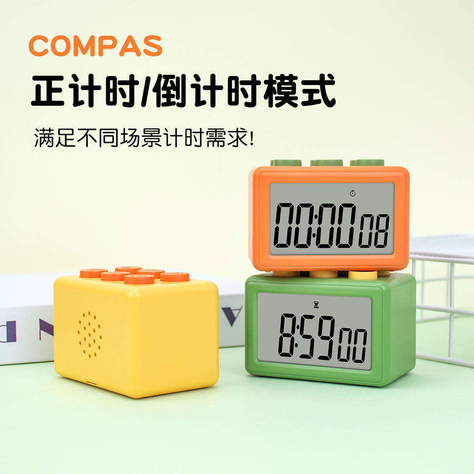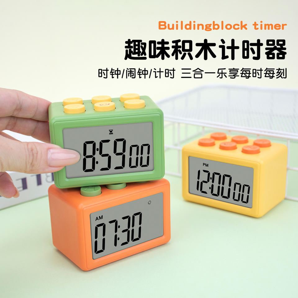 Building Block Timer LCD Display Alarm Clock For Kids Students Kitchen Timer 60 Min Countdown Easy Operation Square Design