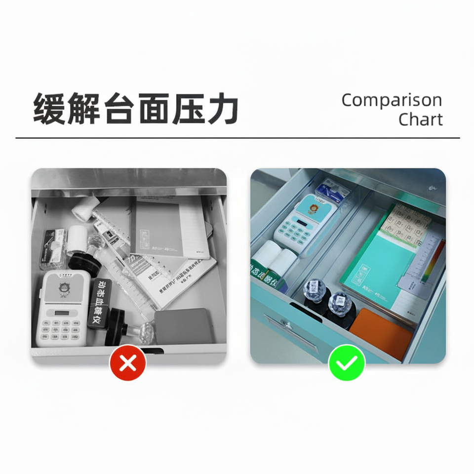 ตัวแบ่งลิ้นชักในตัวสำหรับจัดระเบียบของใช้ในสำนักงานพยาบาล ตู้เก็บของสำหรับบุคลากรทางการแพทย์ ตัวจัดระเบียบของใช้บนโต๊ะทำงาน
