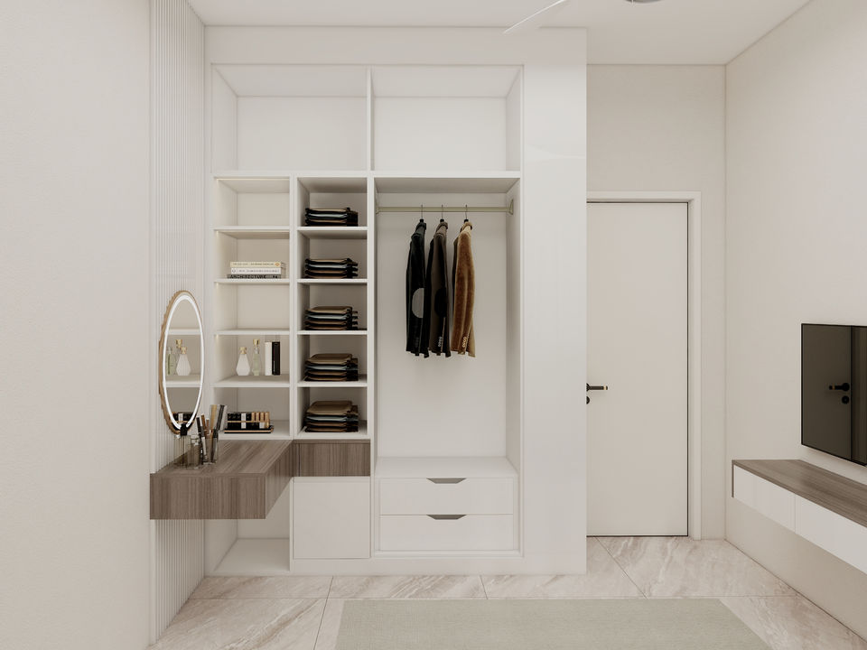 ตู้เสื้อผ้าแบบพกพาสไตล์โมเดิร์น ตู้เสื้อผ้าสั่งทำสำหรับห้องนอน ชุดเฟอร์นิเจอร์ ตู้เสื้อผ้าแบบวอล์กอินพร้อมโต๊ะเครื่องแป้ง