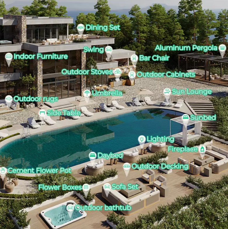 แอปพลิเคชัน:ลานบ้าน, สวน, ระเบียง, ริมสระน้ำ, วิลล่าริมทะเล