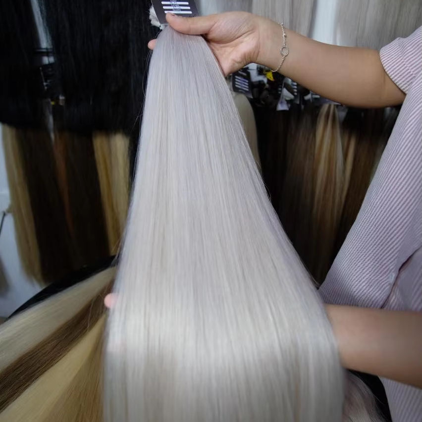 ผมต่อแบบตรงธรรมชาติ100กรัมจำนวนมากจัดส่งเร็วเครื่องเรมี่บริสุทธิ์จากเวียดนามมัดสองชั้นทุกสี70ซม.