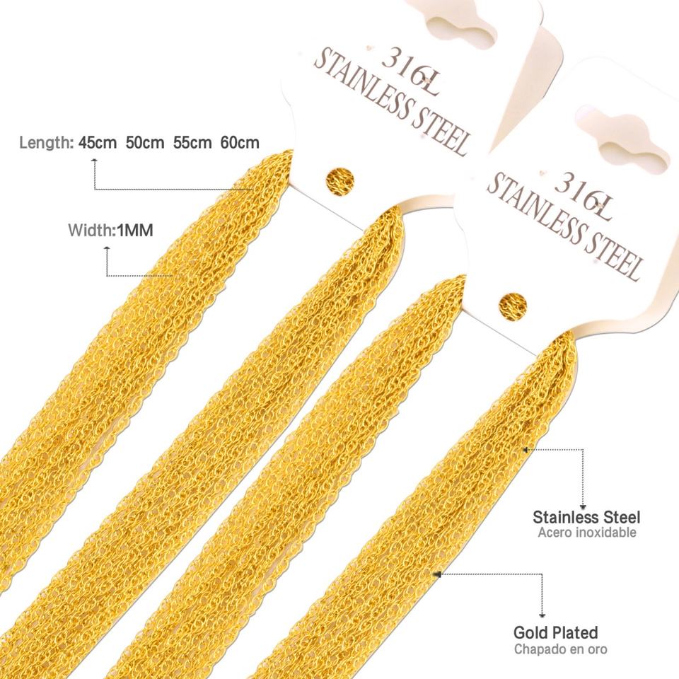 Bulk 10pcs 1mm 2mm Gold Link Chain 18-24 Inches Filled Gold Jewelry Chains for Women