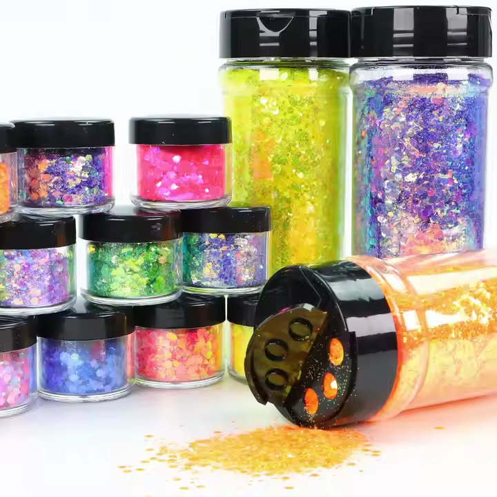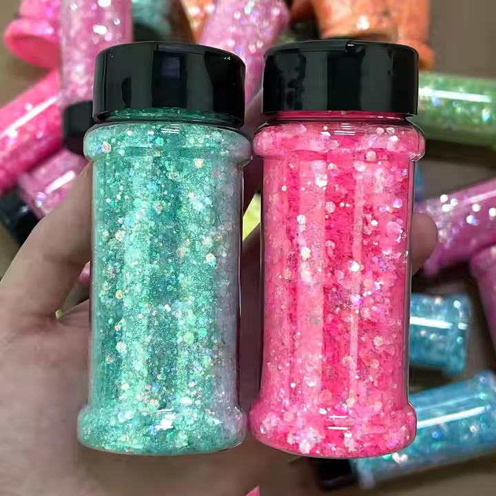 ขวดเชกเกอร์2ออนซ์บรรจุกลิตเตอร์สำหรับงานหัตถกรรมเล็บเรซิ่นทรงหกเหลี่ยมขนาดพิเศษผสมสัตว์เลี้ยง