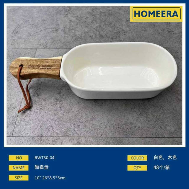 จานพอร์ซเลน10ชิ้นพร้อมด้ามไม้อาคาเซียชุดกล่อง6ชิ้น48ชิ้นต่อกล่องจานอบและกระทะ