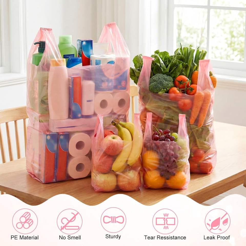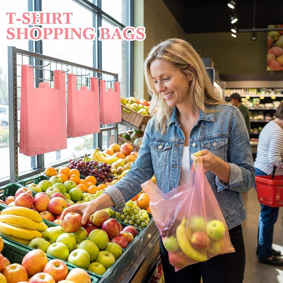 ถุงใส่เสื้อยืดแบบซีลความร้อนย่อยสลายได้ทางชีวภาพ ถุงพลาสติก PE สำหรับช้อปปิ้ง ใส่ขยะ ใส่ของชำ ถุงขายปลีกแบบมีหูหิ้ว สำหรับธุรกิจ ซูเปอร์มาร์เก็ต