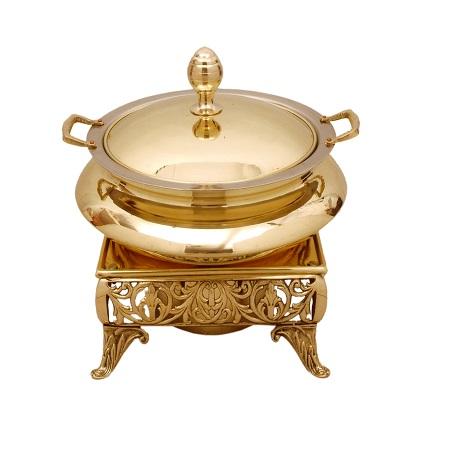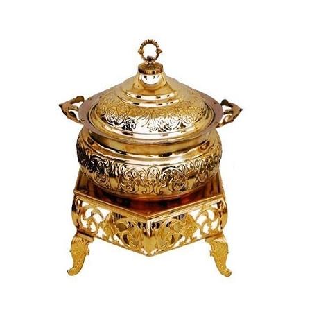 จานร้อนชุบทองเหลืองชุบทองพร้อมแผ่น Chowkhi สีดำจานสำหรับเสิร์ฟอาหารในโรงแรม