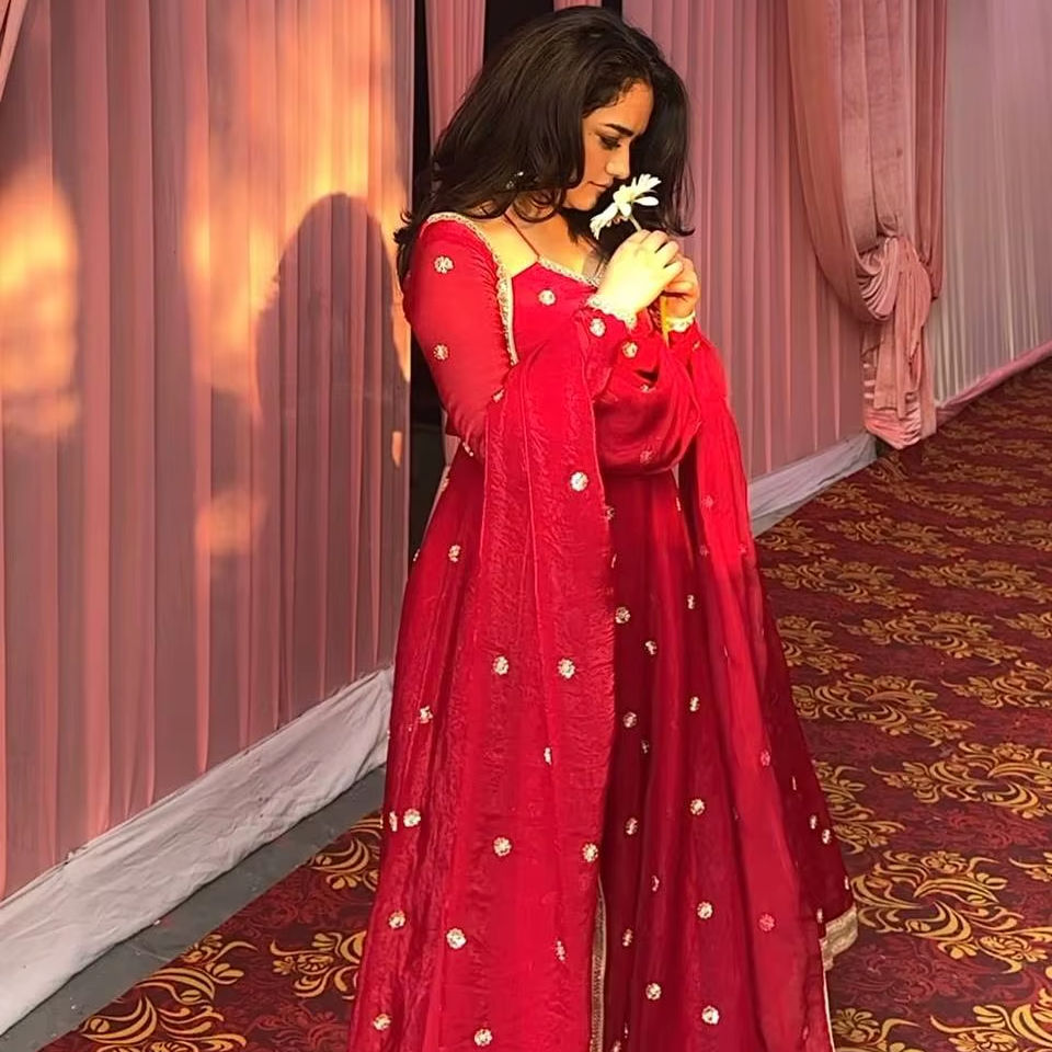 ชุดเดรส Anarkali ผ้าไหมฟานดี้เนื้อหนา ยาว 3.5 เมตร ทรงบาน พร้อมงานปักเลื่อม ตกแต่งด้วยลูกปัด งานเย็บสำเร็จ ชุดสไตล์ชาติพันธุ์ ซื้อจำนวนมาก