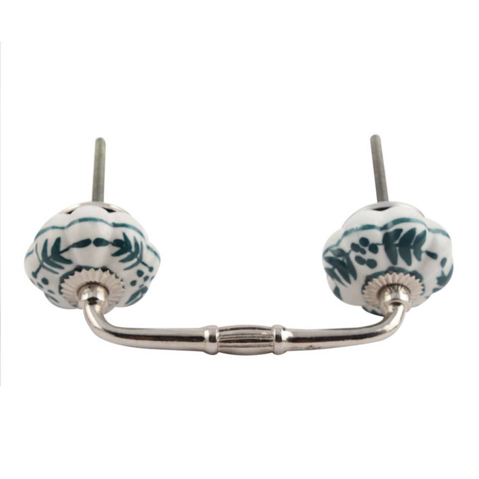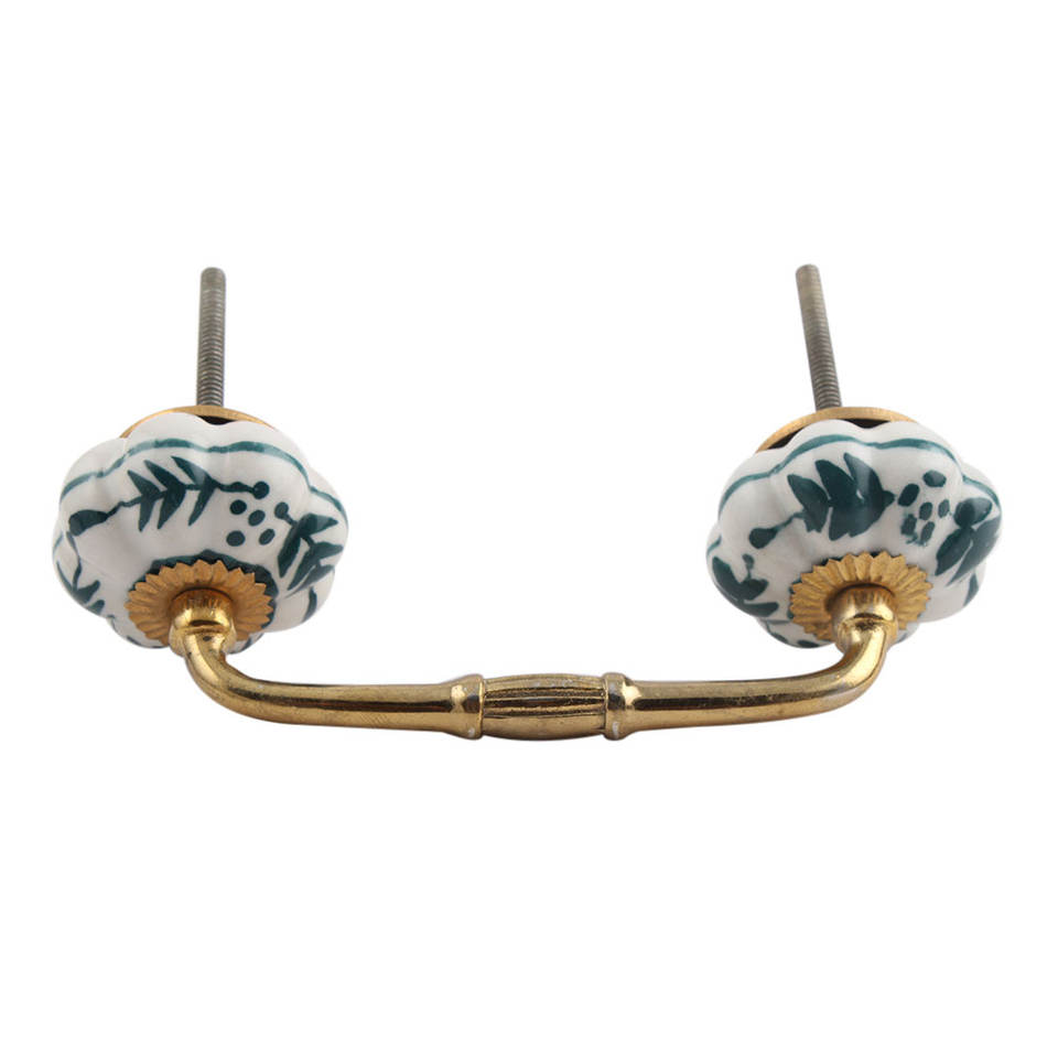 มือจับตู้เก็บของทำมือสีขาวเซรามิกสีเขียวดอกไม้มือจับลิ้นชักสไตล์วินเทจเรียกประตูแบบไม่เหมือนใคร