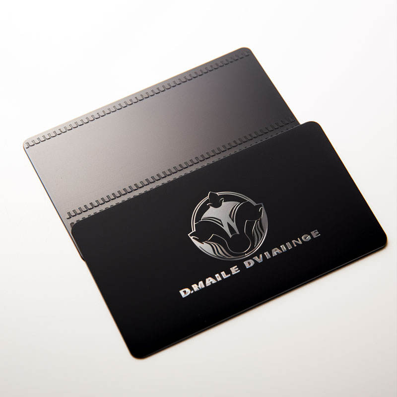 Bulk Company Brand VIP Custom logo Engraved Black and Gold Shiny Metal Business Cards