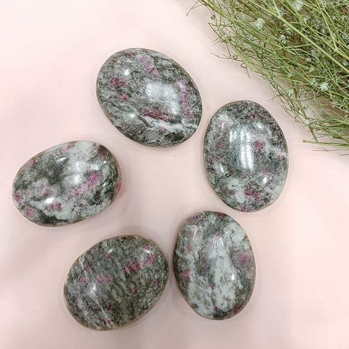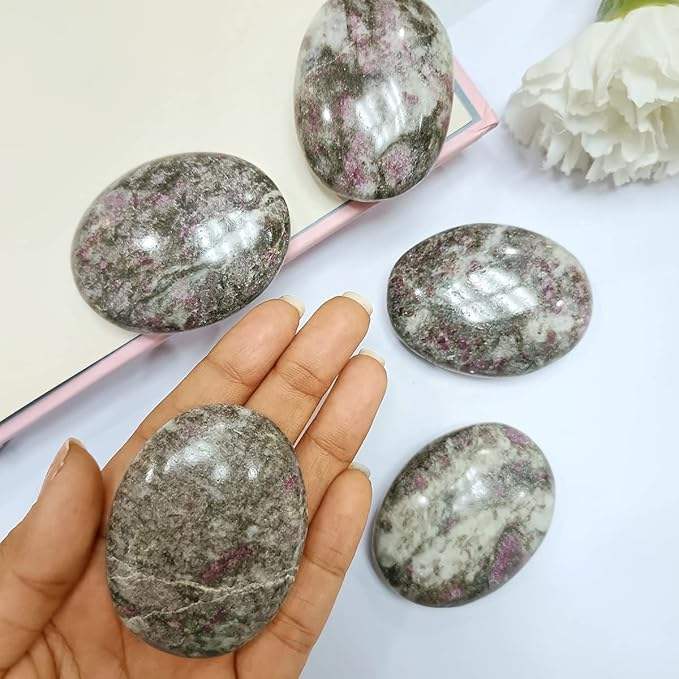 หินทับทิมสีแดงเข้มขัดเงาทำมือแบบขายส่ง รูปทรงวงรี สำหรับทำคริสตัลเรกิและเครื่องมือสำหรับการทำสมาธิ KALA CULTURE