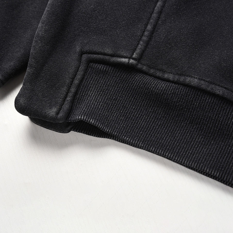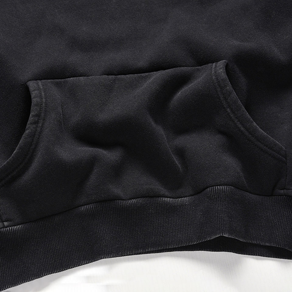 เสื้อฮู้ดผู้ชายโอเวอร์ไซส์สีดำล้วนแบบไม่มีลวดลายไม่มีลวดลาย500gsm กำหนดได้เองน้ำหนักสูง