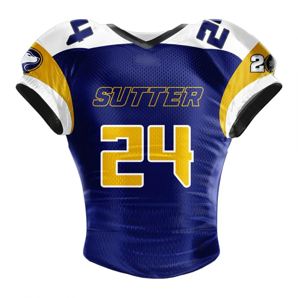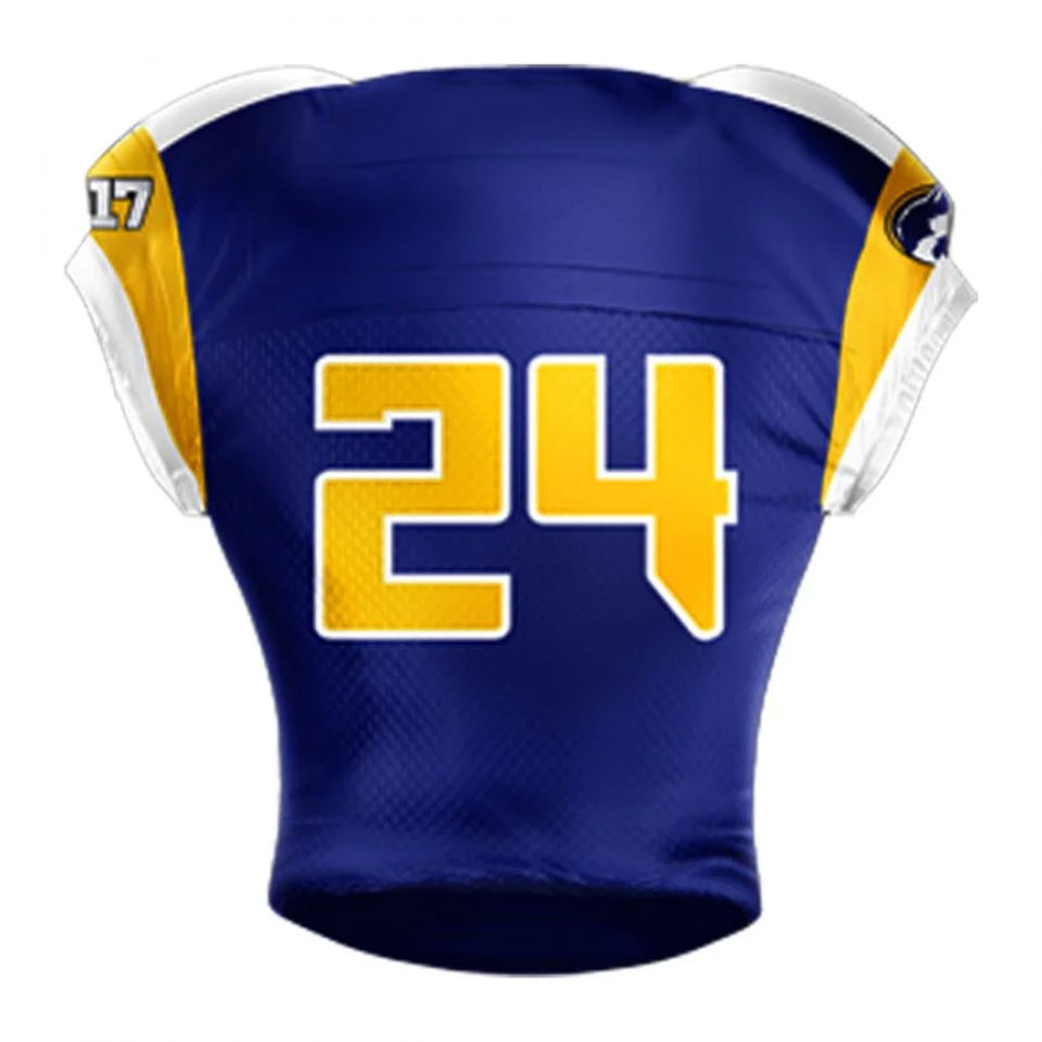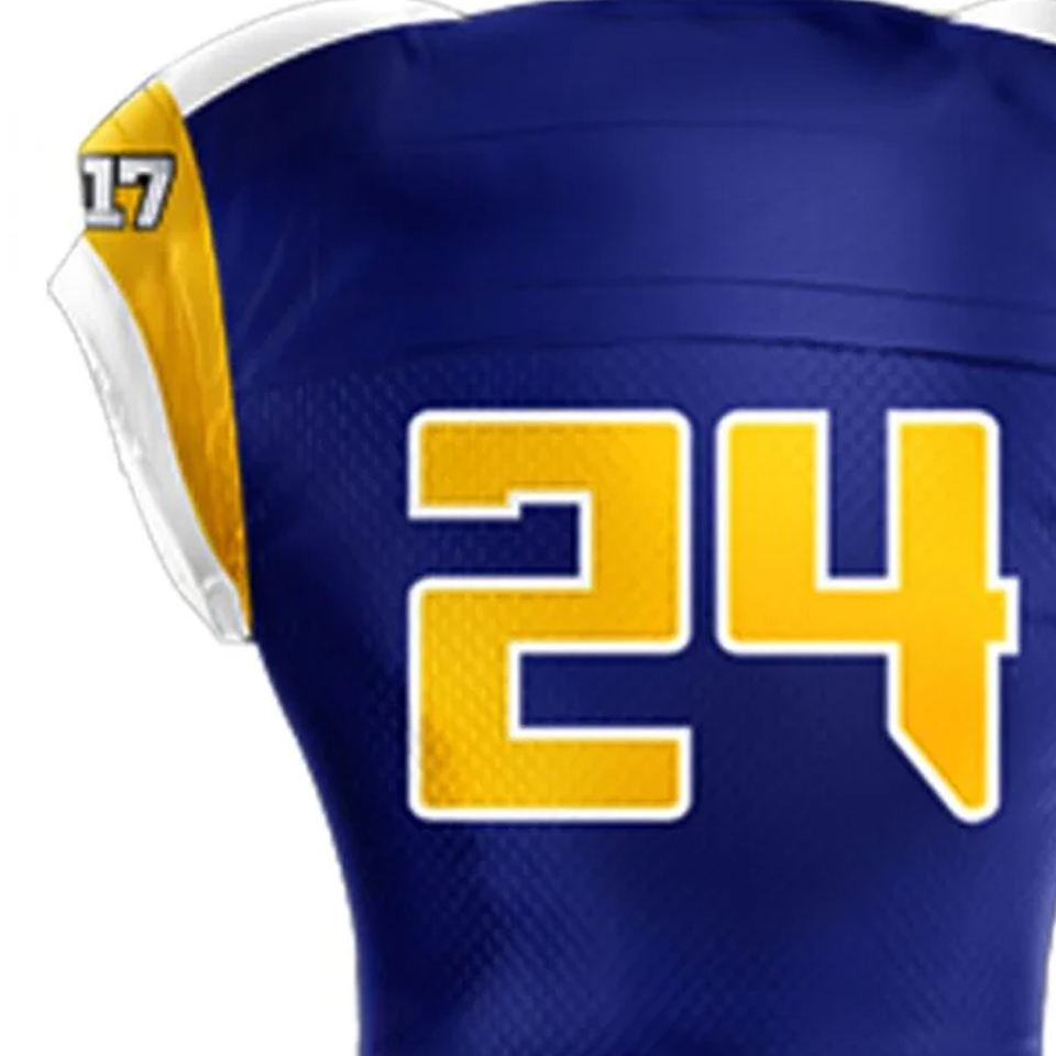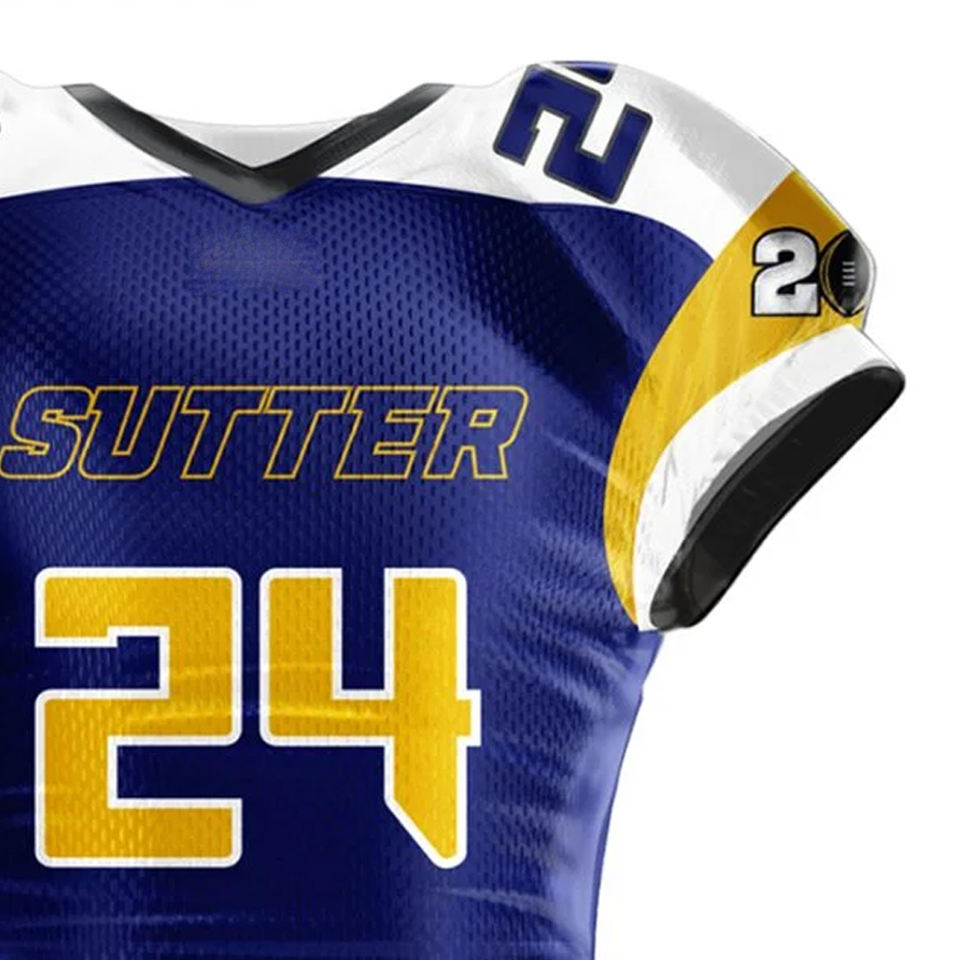ชุดยูนิฟอร์มทีมอเมริกันฟุตบอลแบบสั่งทำจำนวนมาก พิมพ์ลายแบบซับลิเมชั่น แขนสั้น แห้งเร็ว ผลิตจากโพลีเอสเตอร์ สำหรับกีฬา