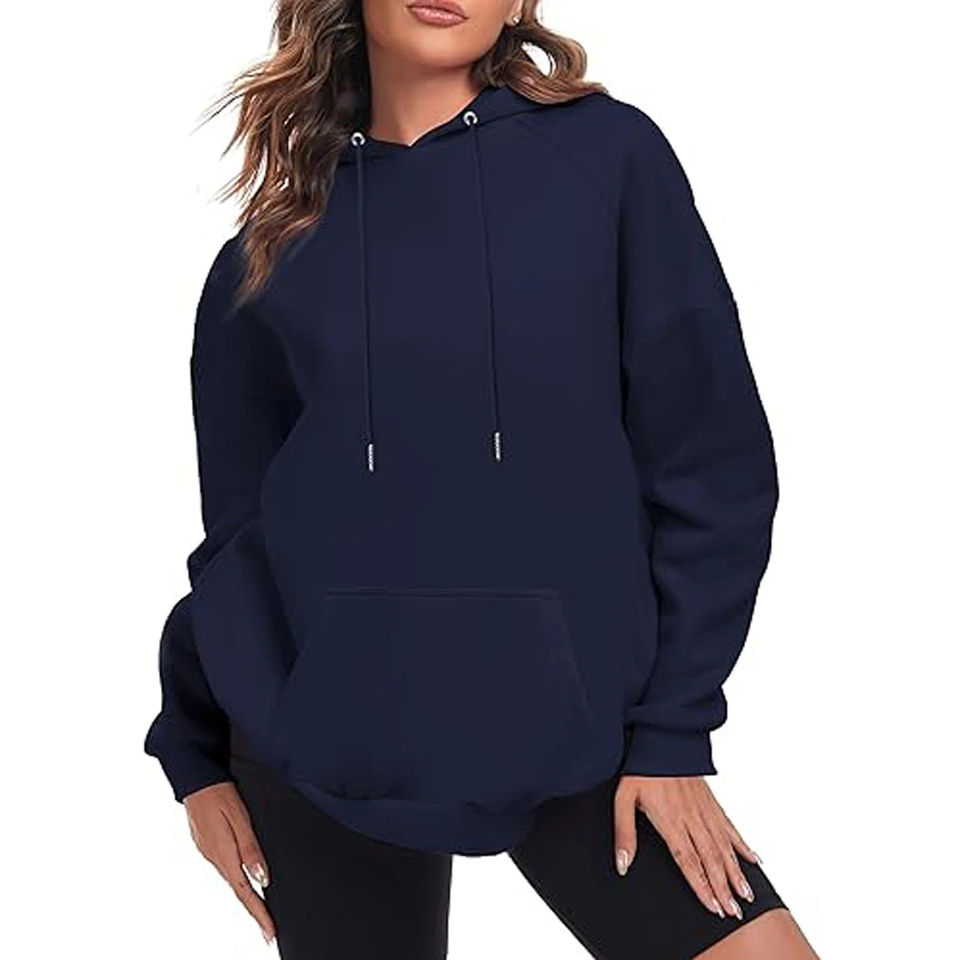ชุดเสื้อมีฮู้ดและกางเกงสเวตเชิ้ตโอเวอร์ไซส์เปิดไหล่ตกทันสมัย