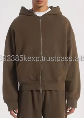 เสื้อฮู้ดซิปผ้าเฟรนช์เทอร์รี่ 460 GSM พิมพ์ลายสกรีนผ้าฝ้ายแขนยาวสำหรับผู้ชายสั่งทำจำนวนมาก