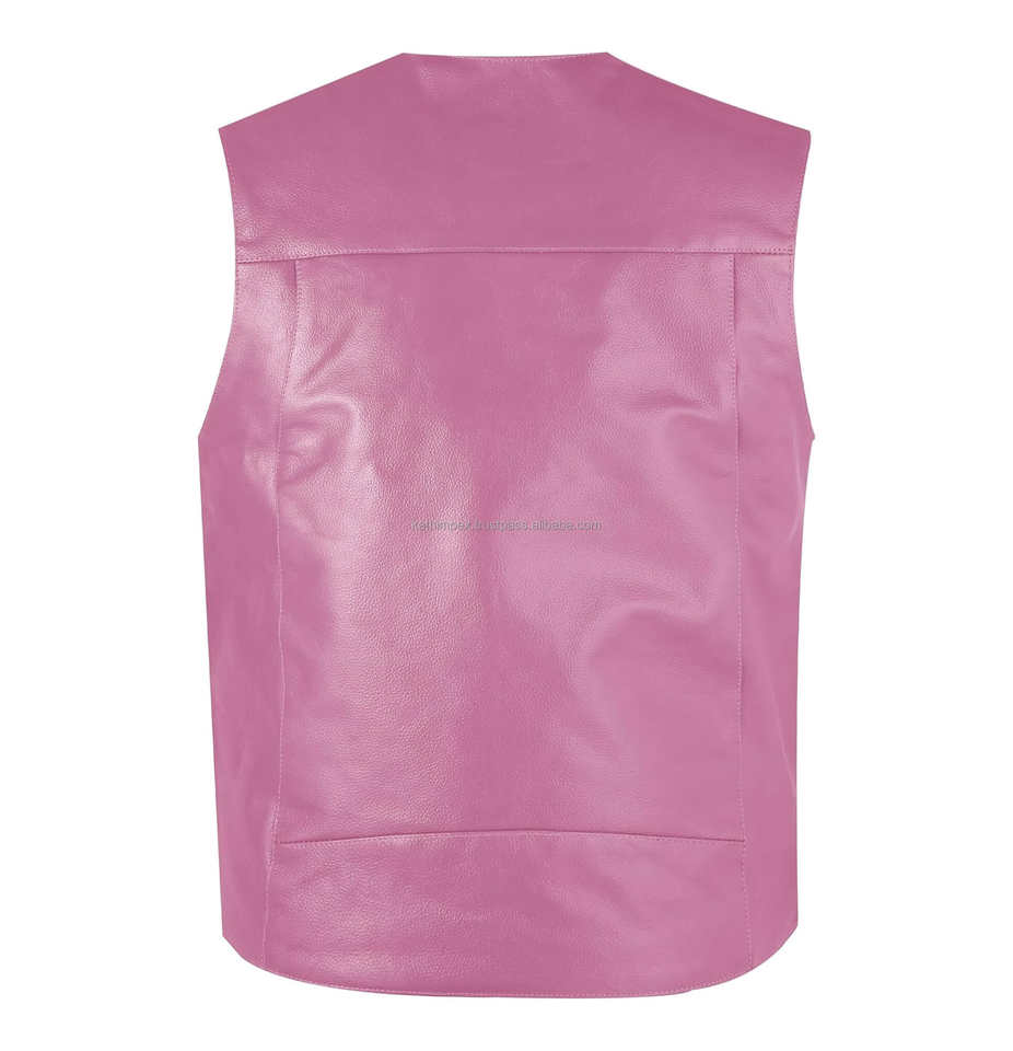 เสื้อกั๊กหนังสีชมพูของผู้ชายคอเสื้อคอวีระบายอากาศได้แบบปรับแต่งได้พร้อมกระเป๋าด้านหน้า2กระเป๋า