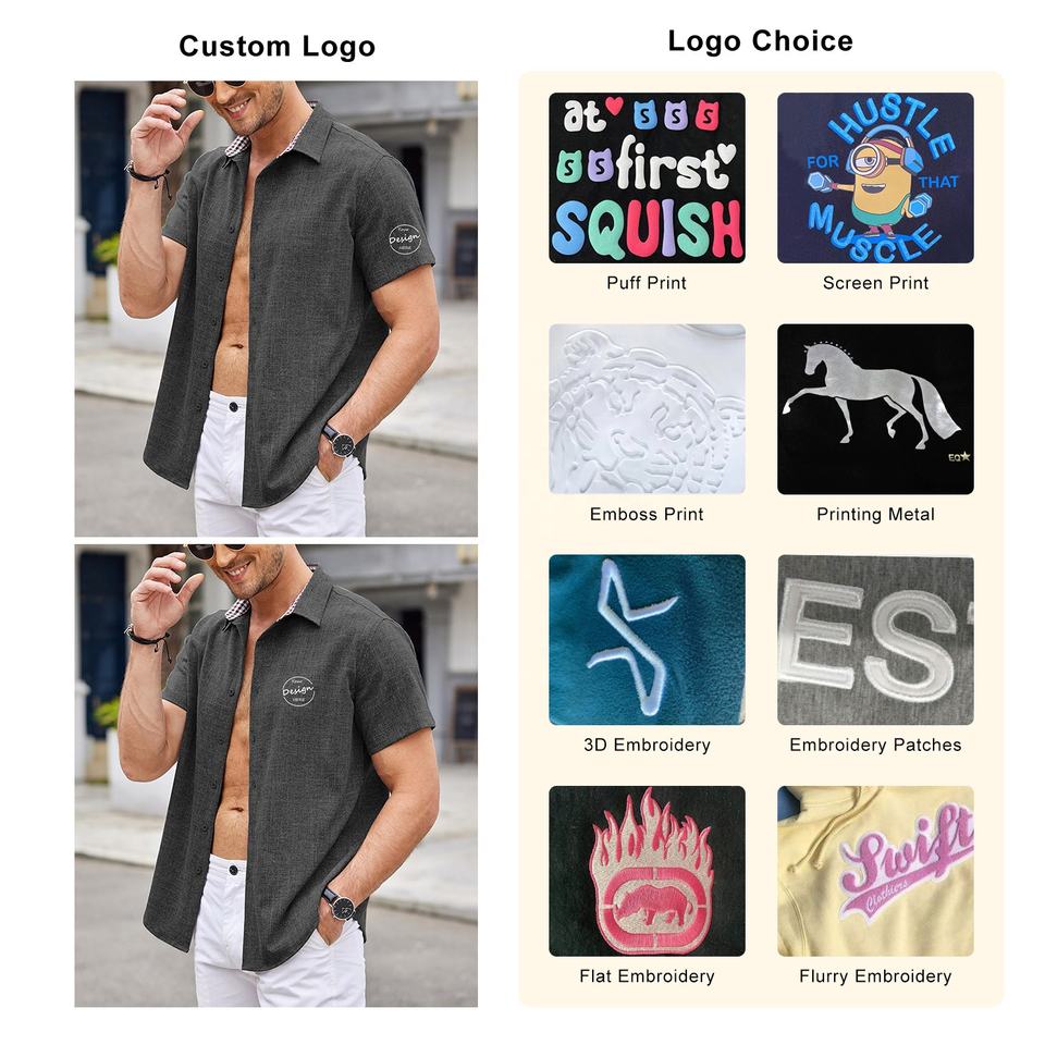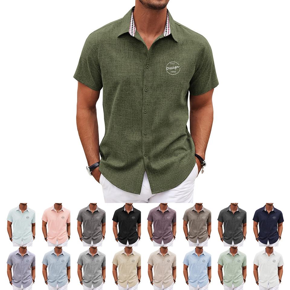 เสื้อแขนสั้นระบายอากาศผ้าลินิน100สำหรับผู้ชายเสื้อเชิ้ตลำลองมีกระดุมสำหรับฤดูร้อน