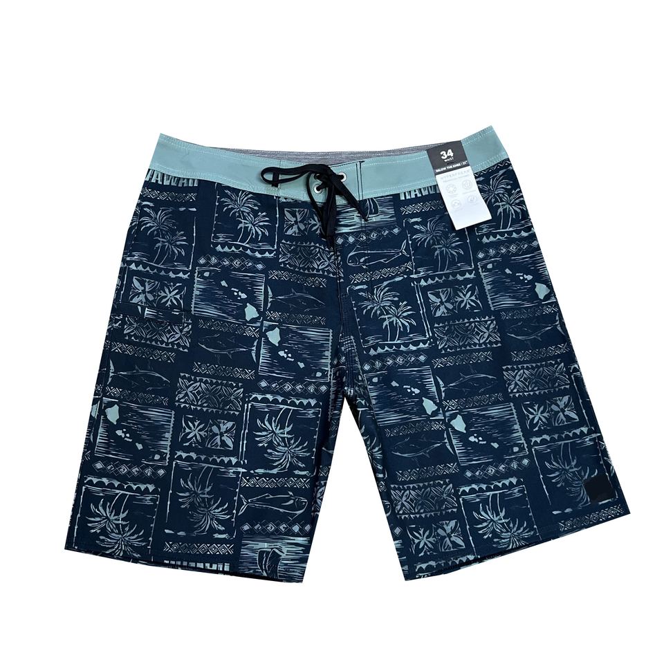 กางเกงขาสั้นชายหาดผู้ชายแบบปรับแต่งได้จำนวนมาก แห้งเร็ว ป้องกันรังสียูวี พร้อมเชือกผูกสำหรับวันหยุด