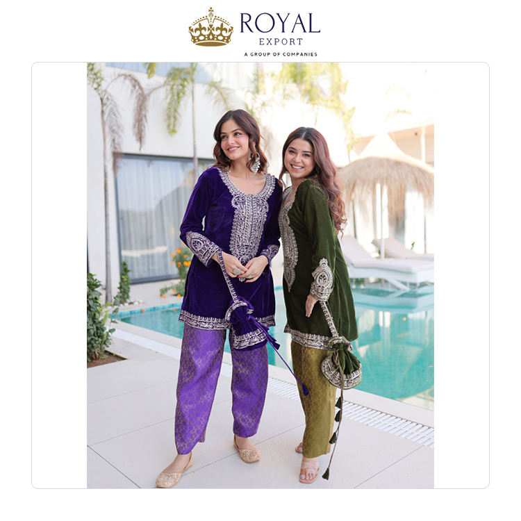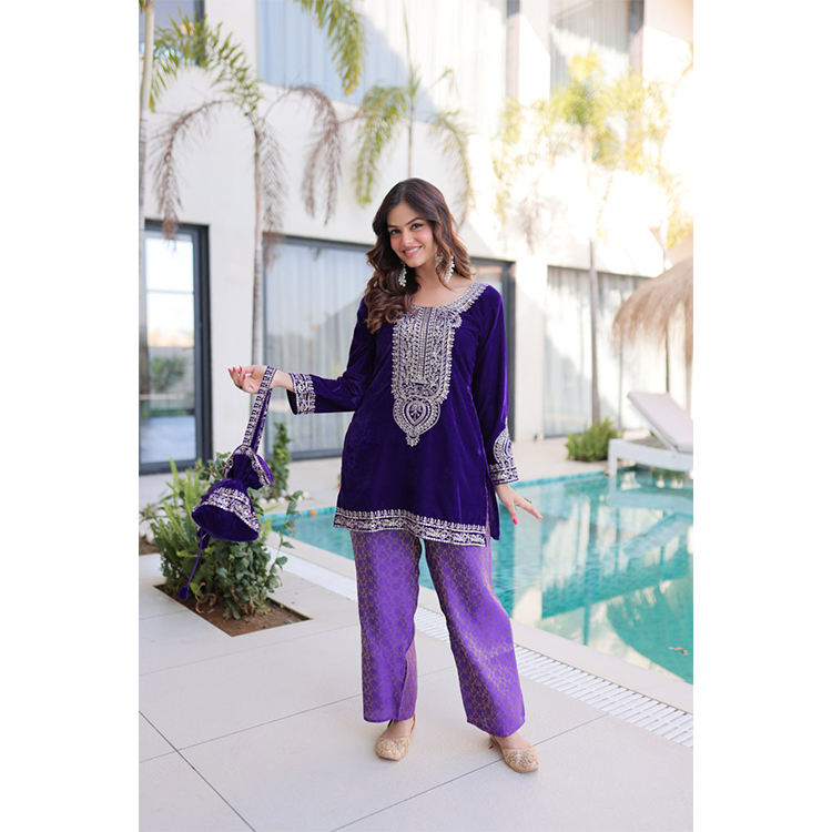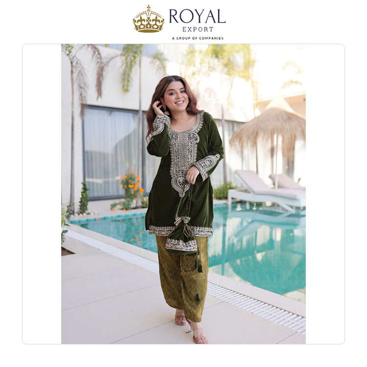 ผู้จัดจำหน่ายขายส่งชุดสัลวาร์ปักลายกำมะหยี่คุณภาพเยี่ยมสำหรับผู้หญิง ดีไซน์ใหม่สไตล์ปากีสถาน