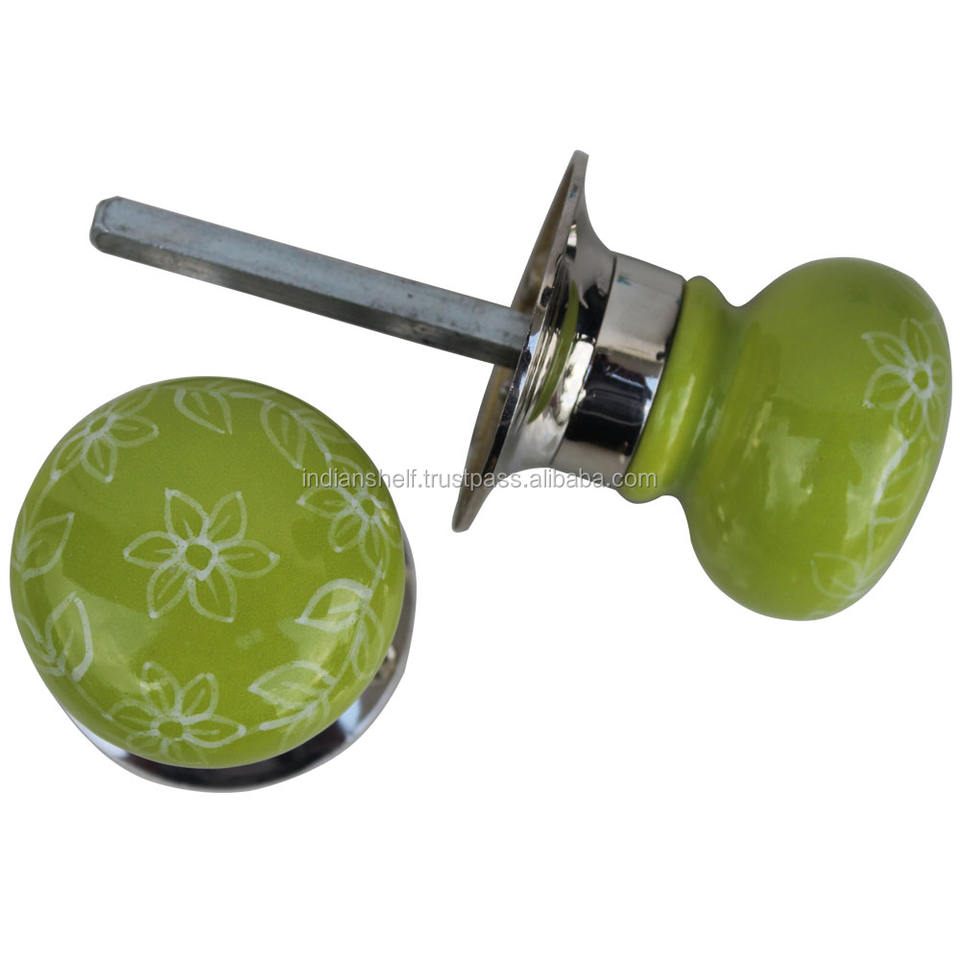 ชั้นวางของเซรามิกแบบมีที่จับสไตล์วินเทจเรียกลายดอกไม้สีเขียวถั่วมือจับลิ้นชักจำนวนมาก