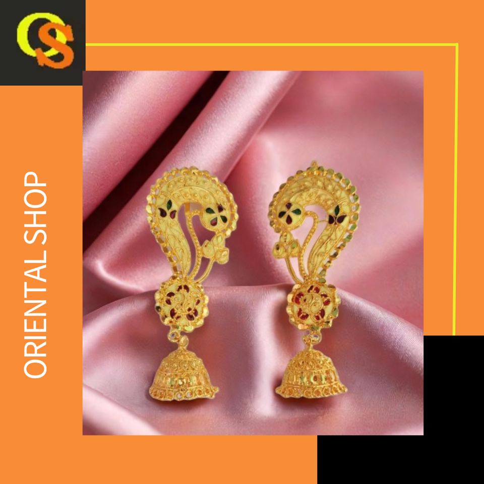 ชุดต่างหูแบบดั้งเดิมเครื่องประดับต่างหูชุบทอง22CT แบบ Jhumka สำหรับผู้หญิงที่สวมใส่โดยผู้ส่งออก