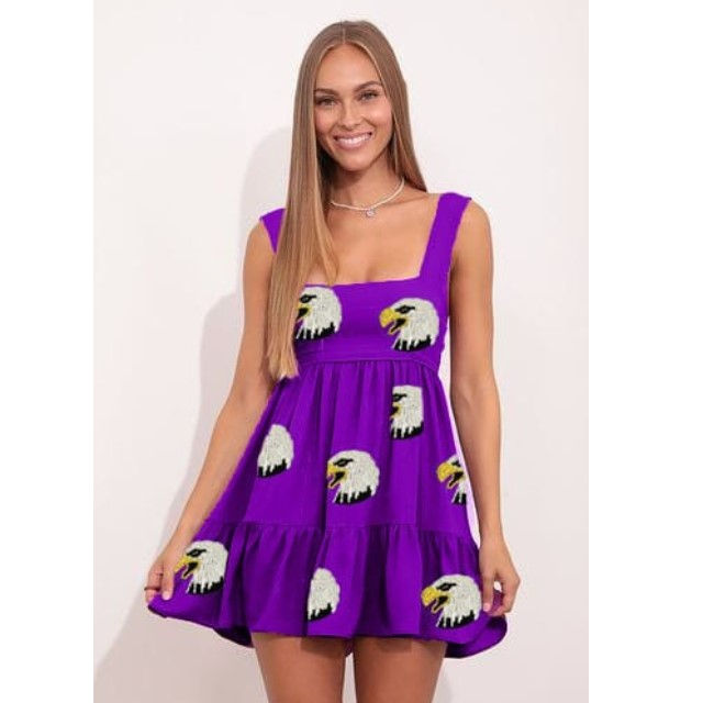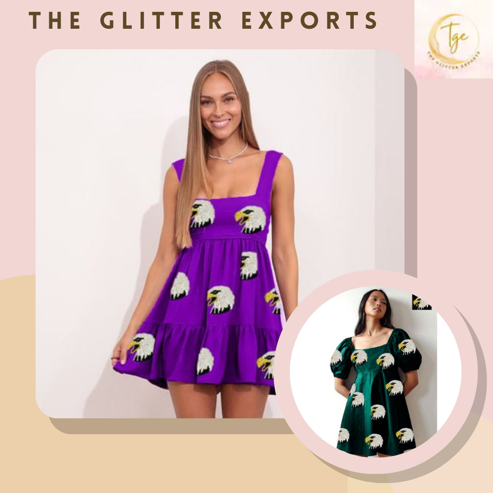 Products Name:Straps Square Neck Game Day Sequin Patch Dress