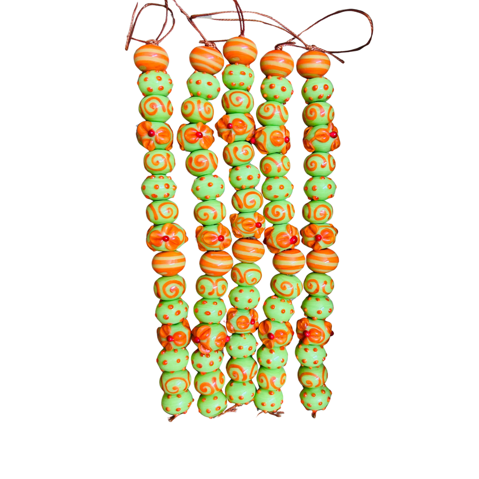 ลูกปัดรอนเดลล์ลายผสมสีเขียวอ่อนคุณภาพสูง | ลูกปัดแก้วหลอมแบบหลวมเคลือบเงา (ขนาด 16-18 มม.) สำหรับทำงานฝีมือ DIY