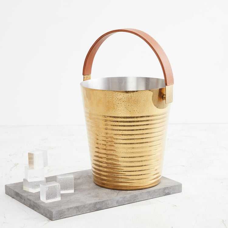 ถังแช่แชมเปญสแตนเลสเคลือบทองแบบมีลายริ้ว ขายส่ง ถังแช่ไวน์และน้ำแข็งแบบสองชั้นสำหรับบาร์และงานอีเว้นท์
