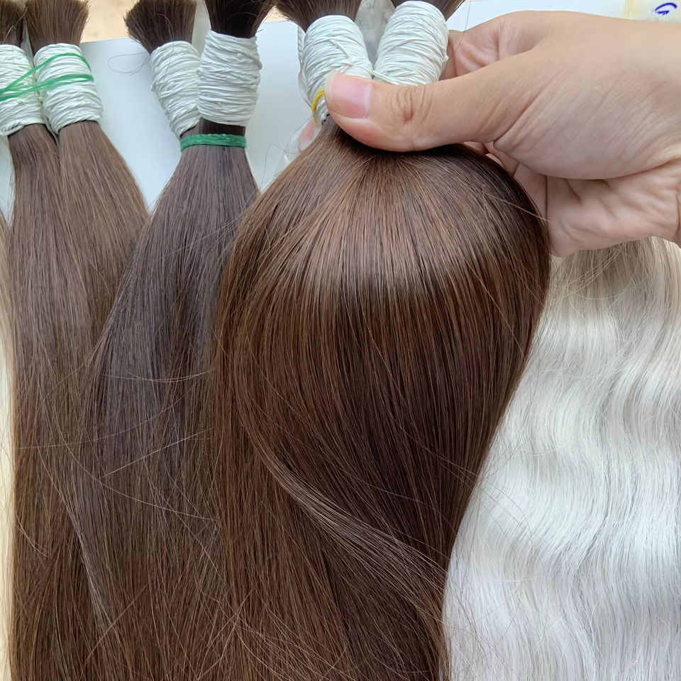 ผมต่อแบบชาวเวียดนามบริสุทธิ์100% สีน้ำตาลผมนุ่มและนุ่มสลวยคุณภาพสูง