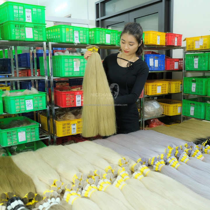 ต่อผมจํานวนมาก ขายส่งผู้ขายผมบริสุทธิ์ ต่อผมวิเอทนัมซิลิโคนดิบ 100% นุ่มและเงา