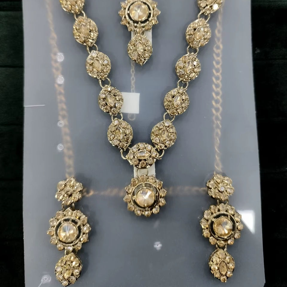 ชุดเครื่องประดับคริสตัลสีทองสำหรับงานปาร์ตี้ สไตล์อินเดียล่าสุด
